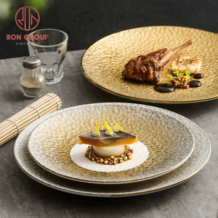 Full-Gold Hammered Straw-Hat Soup Plate Set – Wide-Rim Deep Ceramic Plates for Hotel & Restaurant Plating