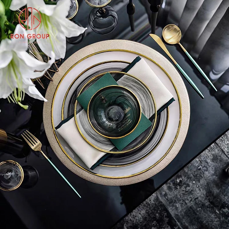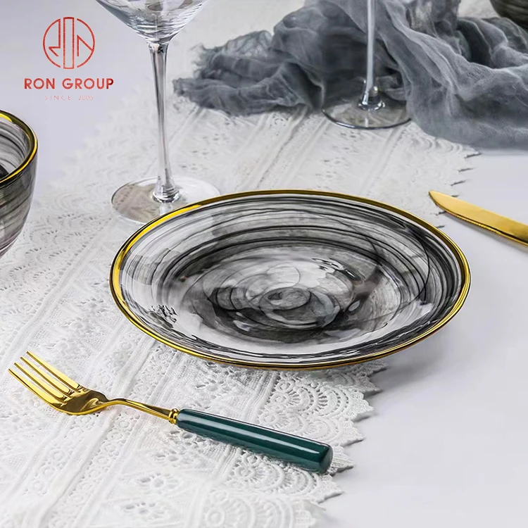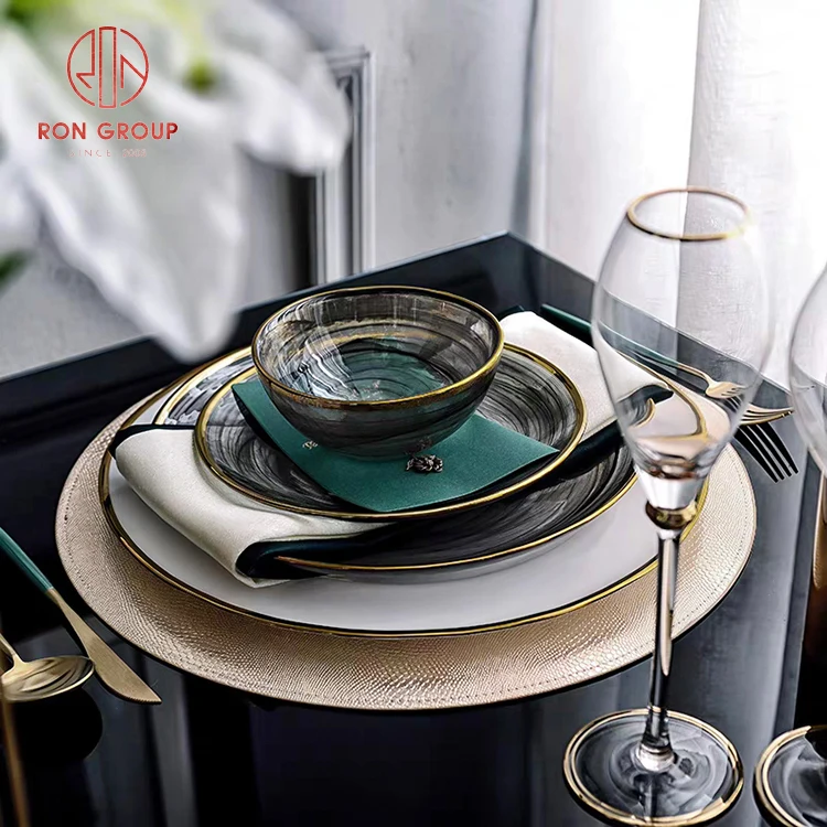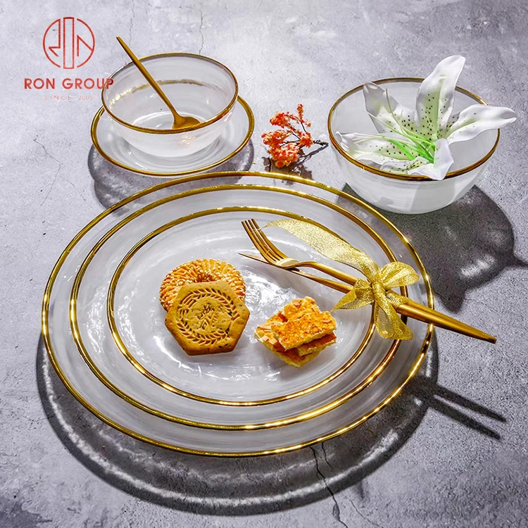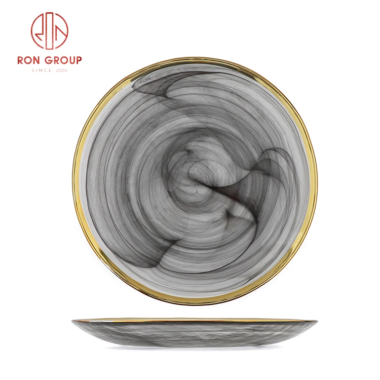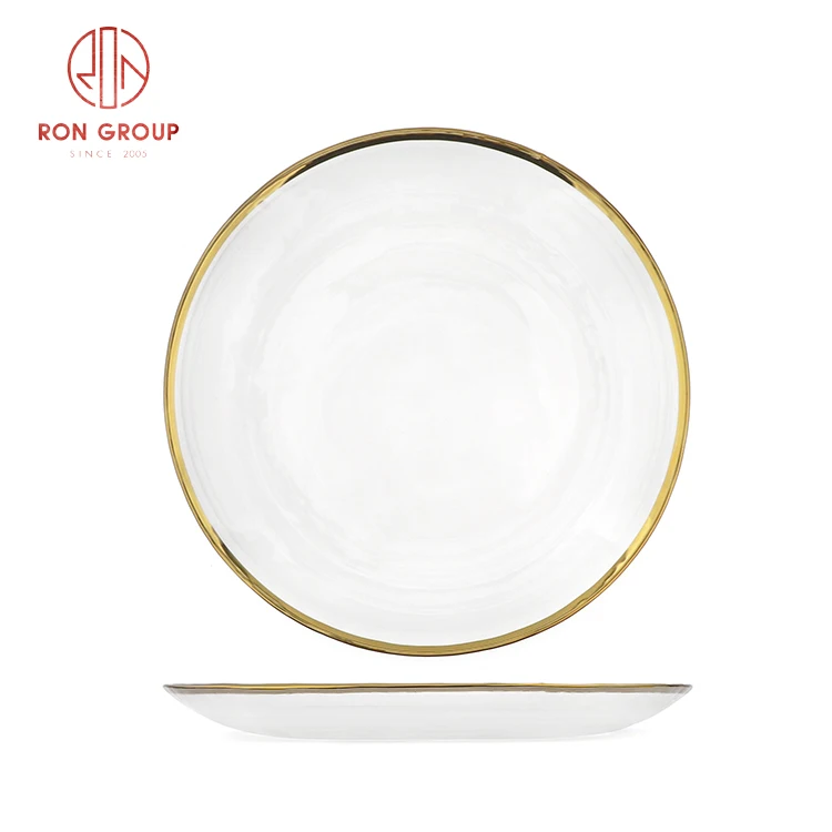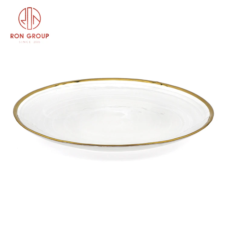 Luxury Minimalist Translucent Glass Charger Plate with Elegant Gold Rim - Black & White Collection