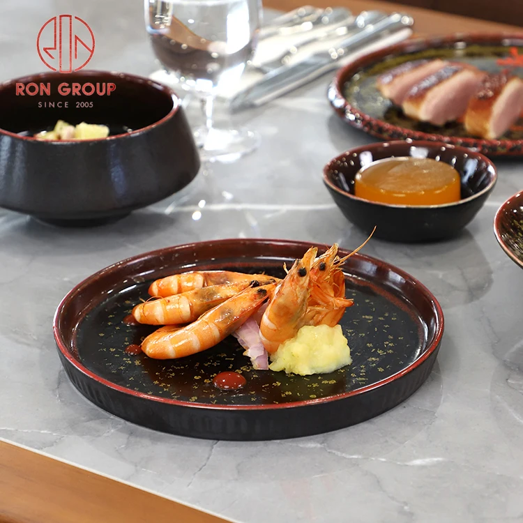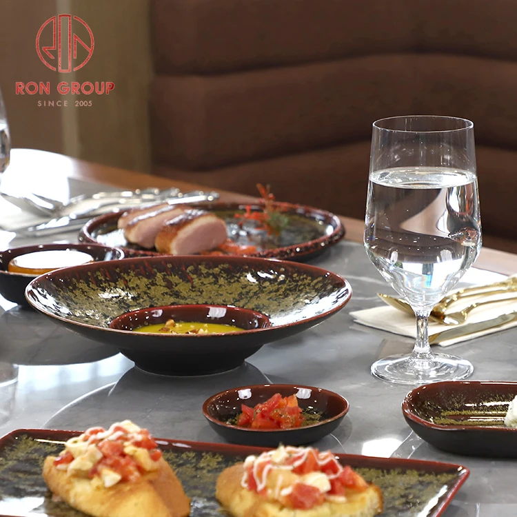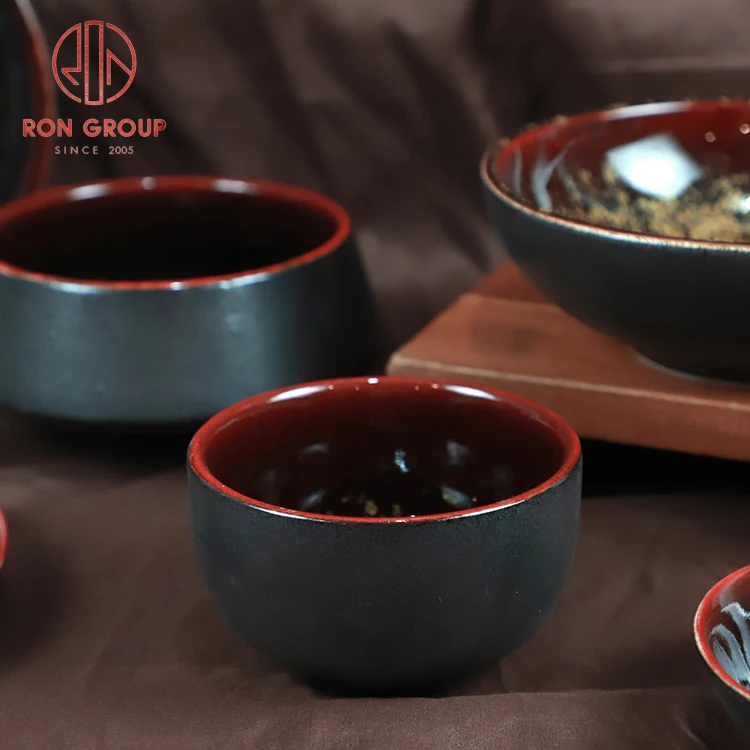 Ankhra Ignis Luxury Red and Black Ceramic Tableware with Gold Speckles
