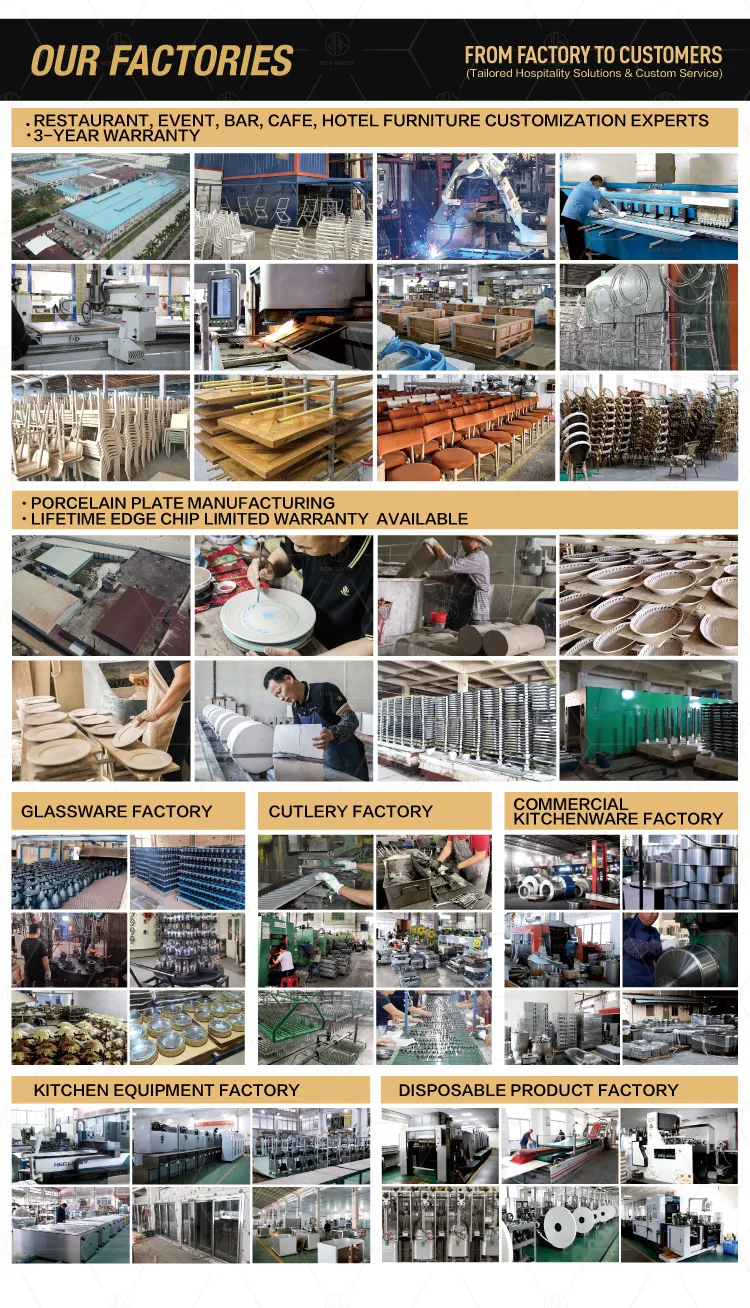 95,700+ Products:Comprehensive range for all restaurant needs. 80% In-Stock Rate:Fast delivery with ready-to-ship inventory. 65% Cost Savings:Factory-direct pricing, minimal overhead. 100% Customization:OEM/ODM, CAD/3D design, tailored solutions. 20+ Years Expertise:Trusted by world-renowned brands. Global Reach:10,000+ satisfied clients across 109 countries.