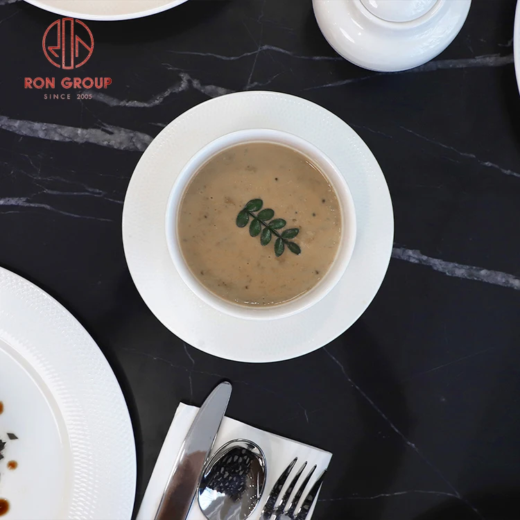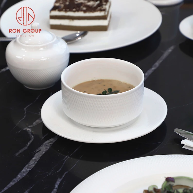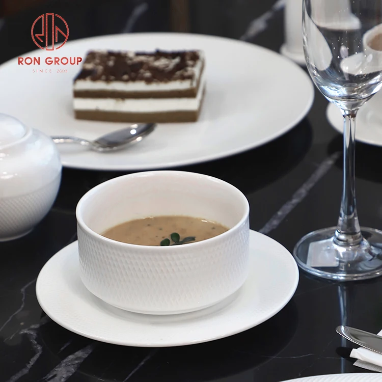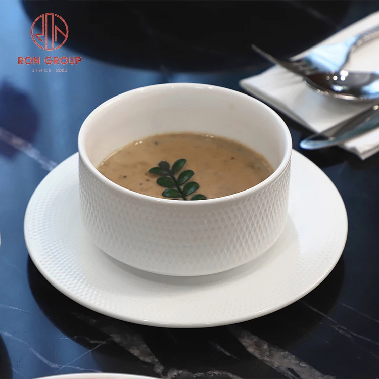 Grid Pattern White Ceramic Commercial Soup Bowl