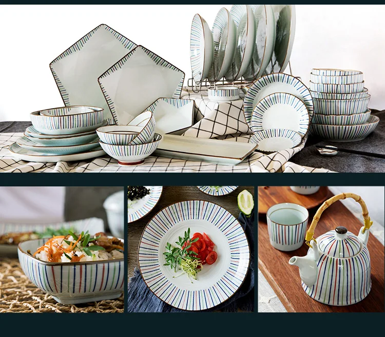 new product high quality japanese style small bowl blue stripe sustainable restaurant tableware ceramic rice ramen bowl