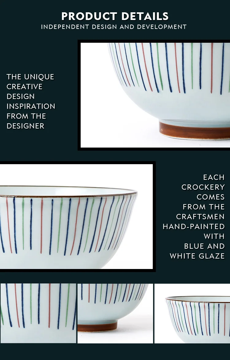 Product Name: Japanese style round striped blue large capacity ceramic noodle bowl