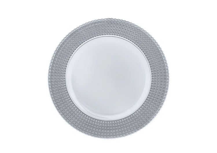 • High Quality Royal Wedding Banquet Party Gold Silver Rimmed Decoration Plates Glass Charger Plates
