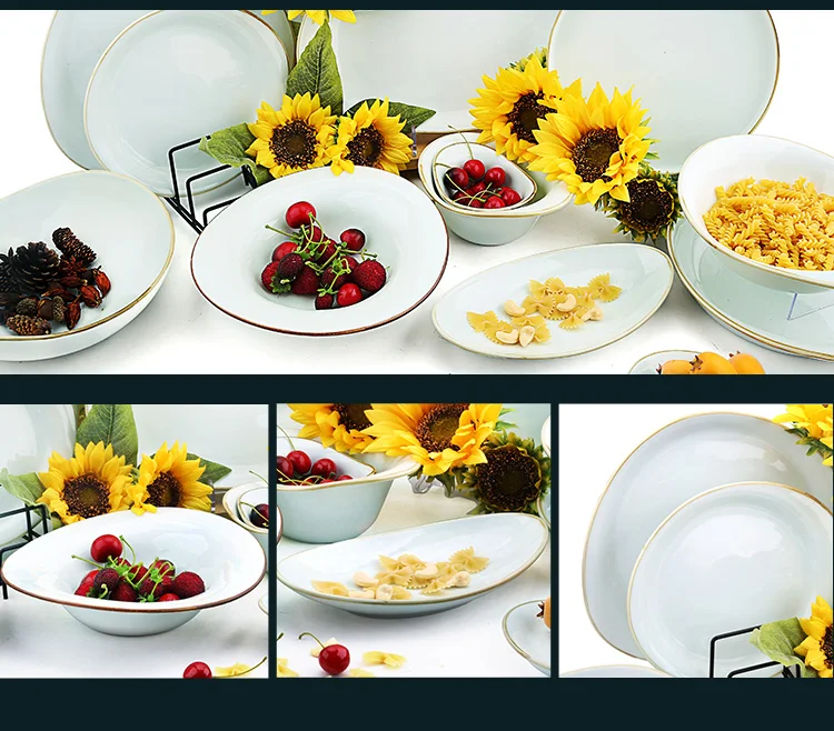 wholesale custom ceramic bowl party dining room fashion white ceramic salad dinnerware gold rim porcelain fruit bowls