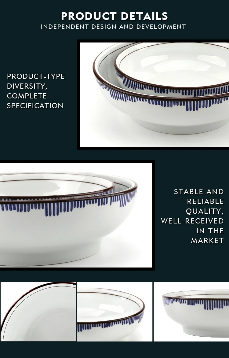 • Chinese style restaurant hotel large porcelain soup bowls tableware factory cheap ramen bowl set ceramic bowl