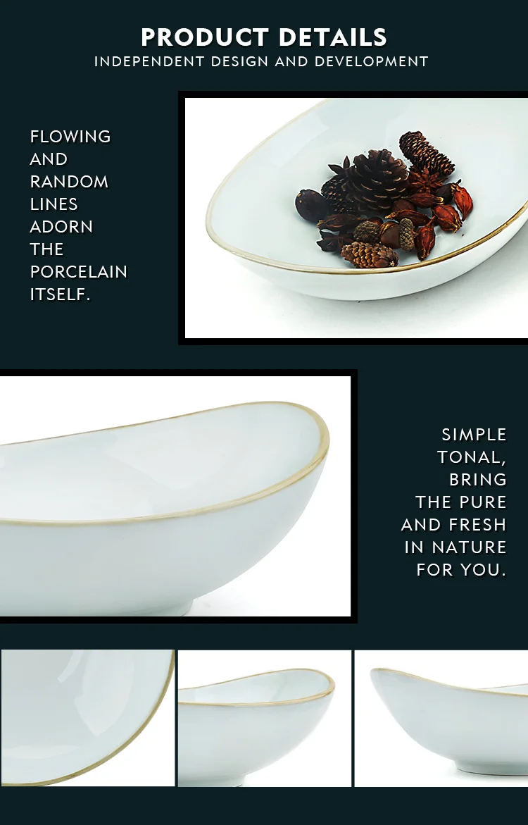 • terminal restaurant use tableware oval white food porcelain salad buffet ceramic bowls with gold rimmed edge