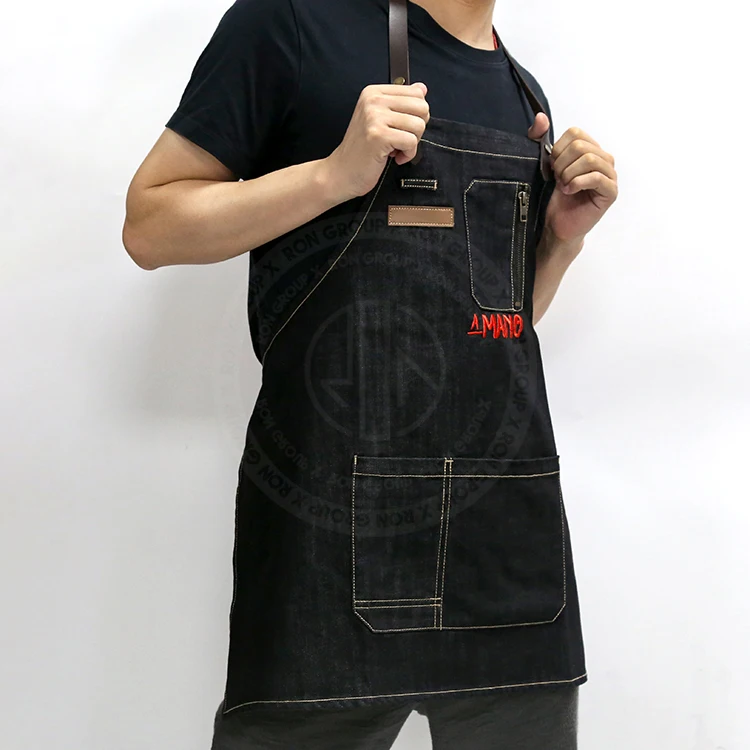 • Cafe Bar Restaurant Barista Waitress Work Uniform Zipper Pocket Denim Logo Aprons Custom