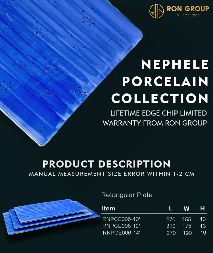 wholesale fine dining restaurant use plates sets dinnerware ceramic dish blue rectangle flat porcelain plates