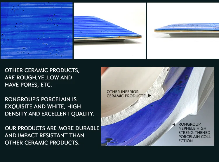 • wholesale fine dining restaurant use plates sets dinnerware ceramic dish blue rectangle flat porcelain plates