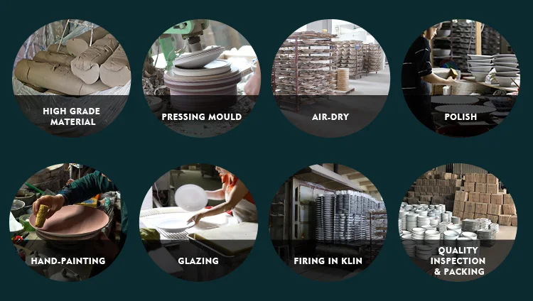 • custom 10 12 14 inch restaurant use handmade dishes high temperature resistance ceramic plates sets dinnerware tableware