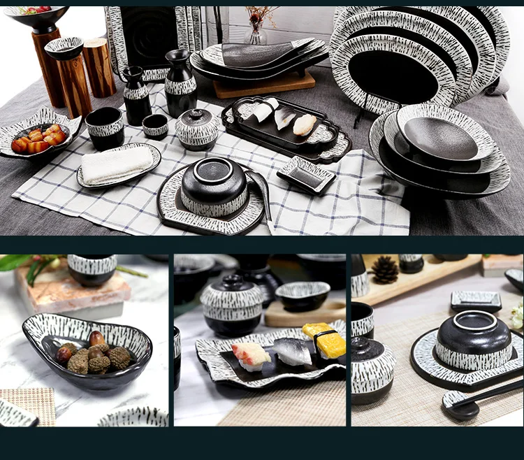• custom rectangular sushi long plates ceramic restaurant dinnerware rectangular creative black white japanese plate