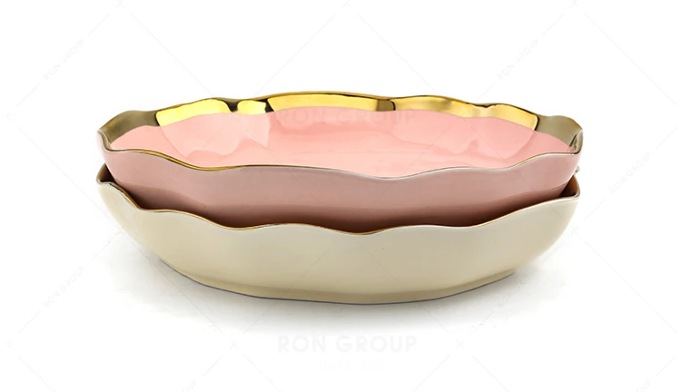 Product Name: Gold Rim Shallow Soup Bowl Irregular Shape Ceramic Dinner Soup Plates