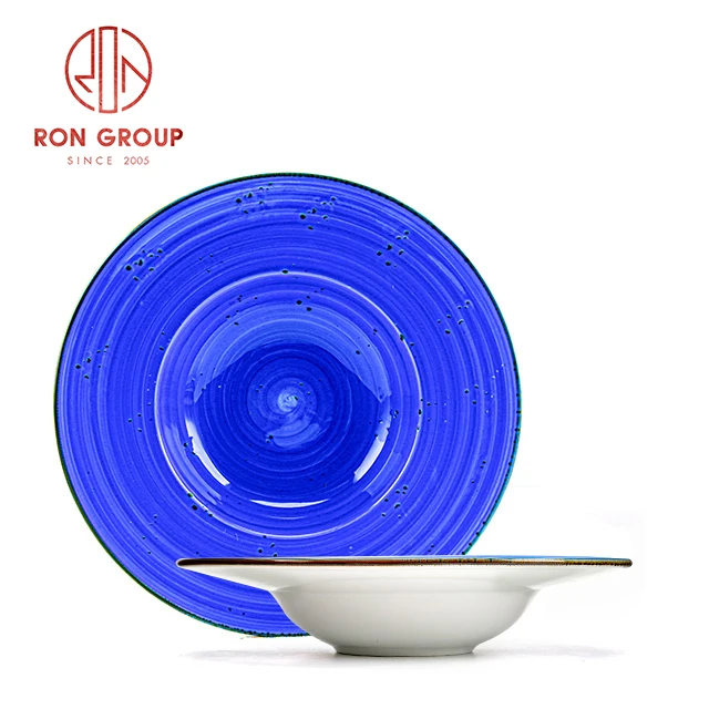 • hot sale blue color hotel dinnerware set porcelain soup pasta deep plate for restaurant ceramic dinner plates