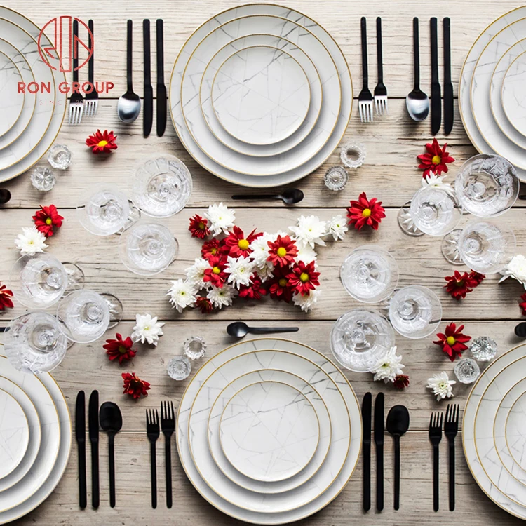 nordic western style bone china marbling pattern hotel restaurant kitchen tableware set dinner dinnerware charger plates