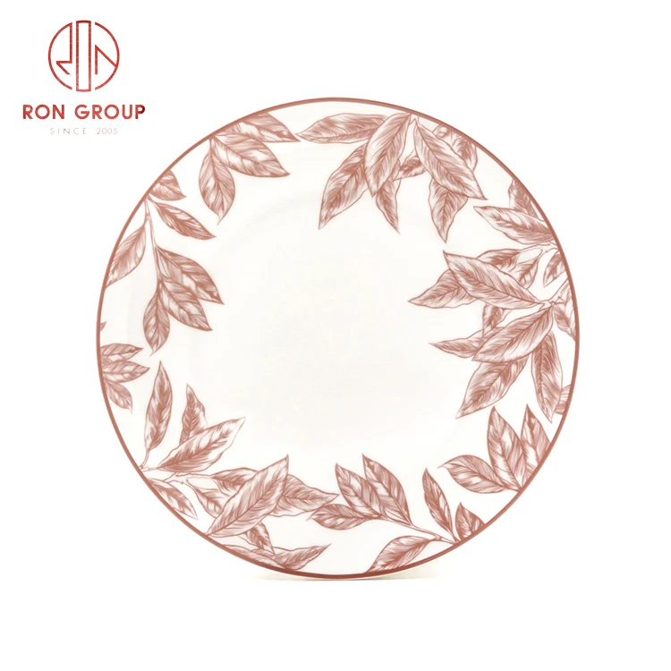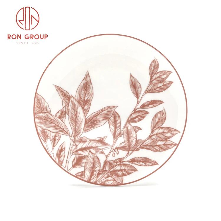 hot sale wholesale vintage design red leaf plate round porcelain tableware kitchen restaurant bone china dinner set