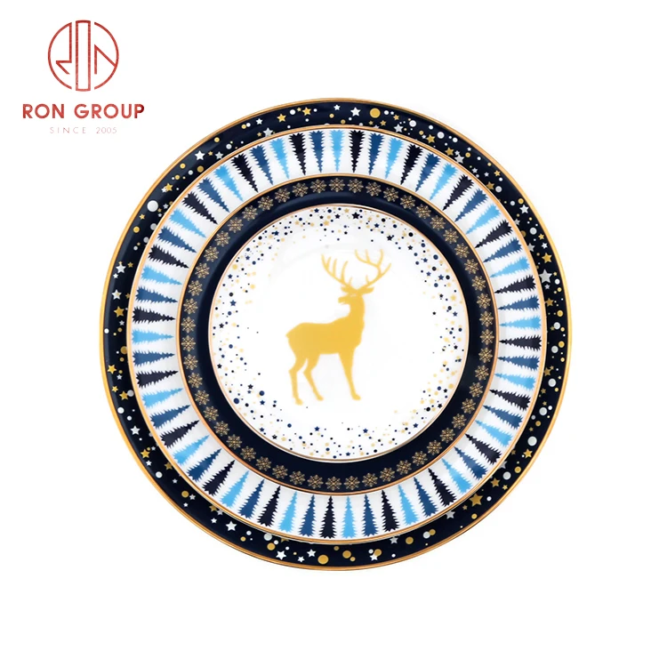 • customized high quality Christmas plates modern tablerware decorative ceramic dinnerware set Bone China dinner plates