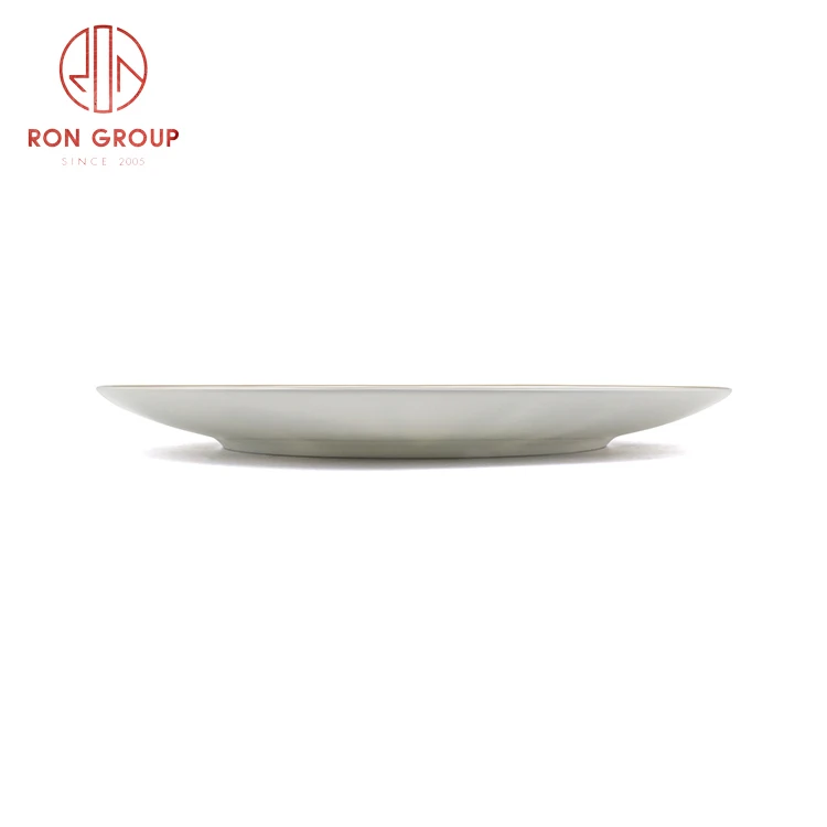 Name: Gold Rim Green Plant Pattern Dinner White Plates Restaurant Dinnerware