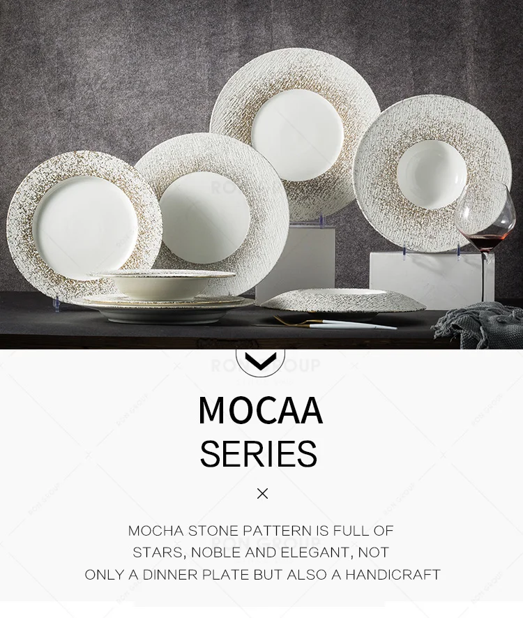 Modern Luxury Hotel Restaurant Banquet Decoration Gloden Starry Matte White Ceramic Charger Plates Wedding