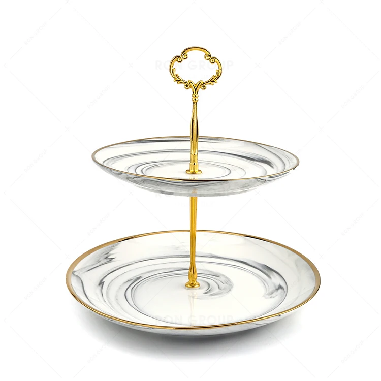 High quality luxury ceramic marble pattern 3 tier dessert stand for wedding cakes hotel high tea cake stand