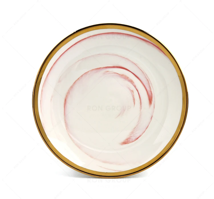 Modern Gold Rim Marbled Wedding Banquet Charger Plate Sets Restaurant Kitchen Ceramic Dining Plate Set