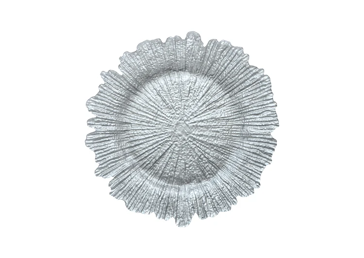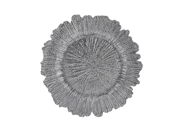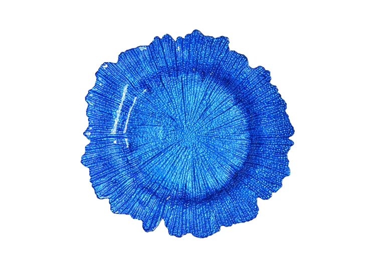 Hot Selling Wedding Banquet Party Glass Decoration Plates Irregular Colourful Gold Reef Charger Plate
