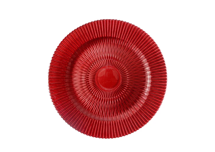 Wholesale High Quality Wedding Banquet Dinnerware Glass Charger Plates Red Blue Color Decor Plate