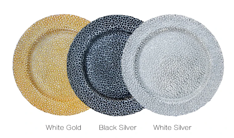 • Modern Luxury Wedding Banquet Food Serving Decoration Plates 13 Inch Golden Silver Glass Charger Plates