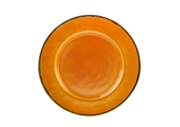 • Golden Rimmed Colourful Glass Charger Plates Wedding Banquet Event Decoration Plates Dinnerware Crystal Plate Chargers