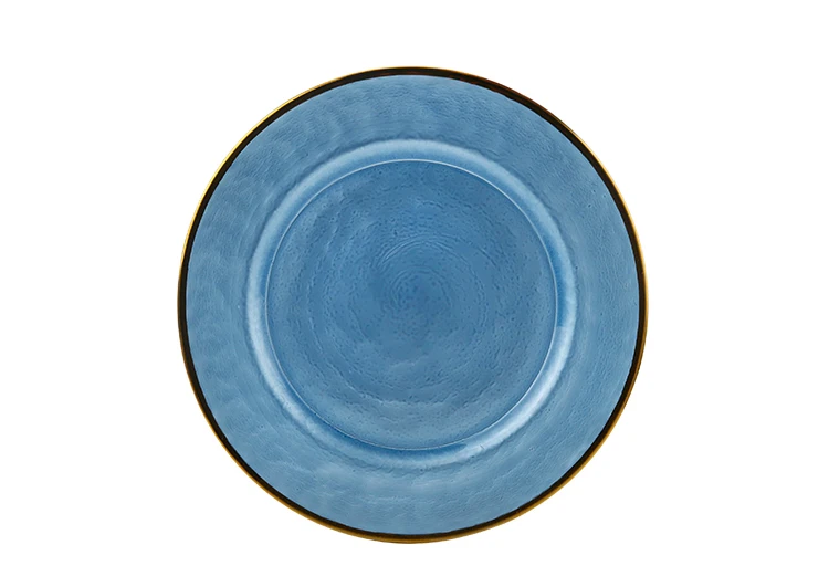 Golden Rimmed Colourful Glass Charger Plates Wedding Banquet Event  Decoration Plates Dinnerware Crystal Plate Chargers