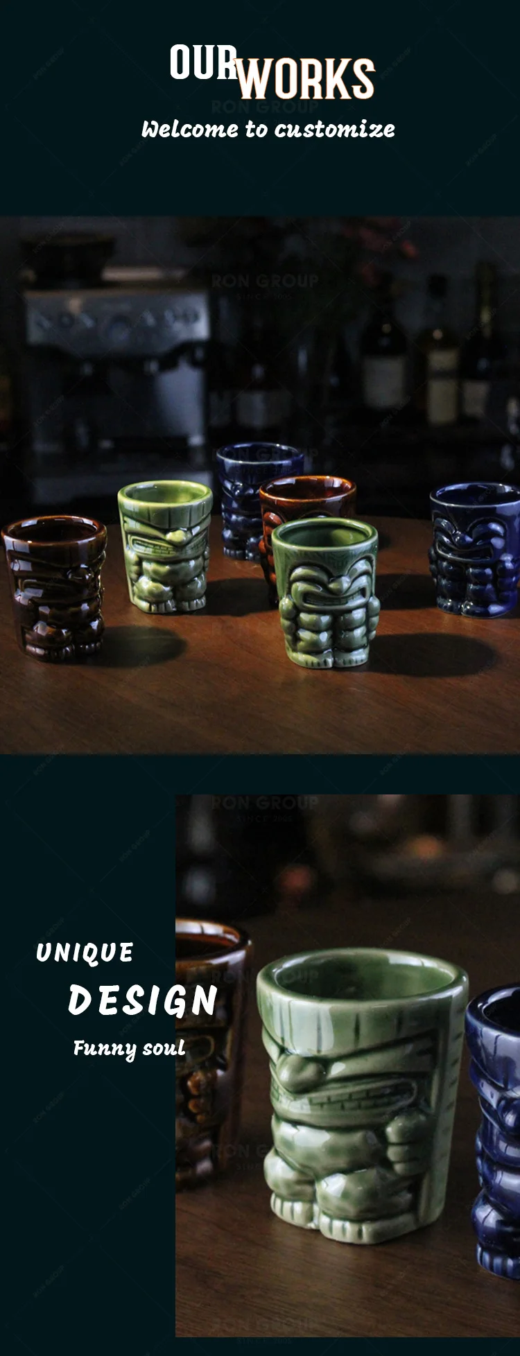 • Hot Sale Creative Unique Design Custom For Bar Restaurant Small Ceramic Tiki Mugs