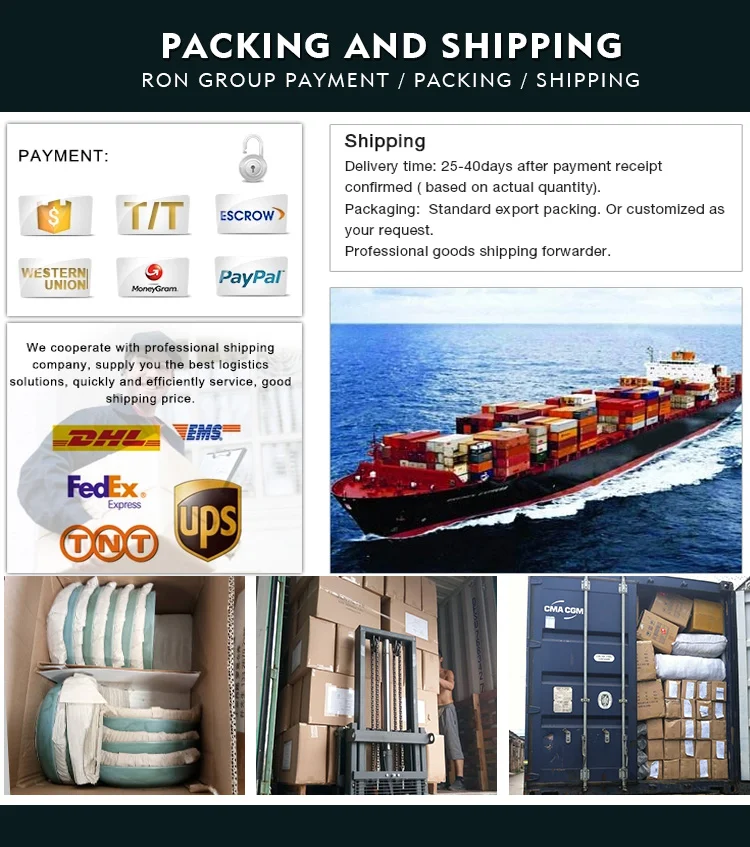 Q:What is your lead time and cost for samples? 1. For existing samples, they are free of charge and we usually get them ready in 7 days. For customized samples, the cost and sampling time will be up to the requirements. 2. For all the samples, we will send them freight collect. If you do not have a courier account, we can send them using our account after receiving the payment via PayPal.